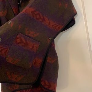 Wool like buttoned Aztec patterned cape with button closures on side - warm and funky!