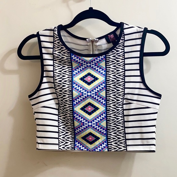 Aztec striped crop top. Scuba stretch fabric. Brand new, never worn. Size medium.