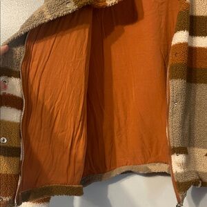 Stay cozy and stylish with the Women's Jacket. Featuring a blend of brown, tan, and cream colors! This jacket is very neutral colors and is so cozy! It’s like new!