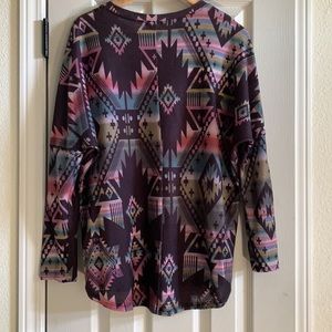 Gorgeous colors on this long sleeve Aztec print top! Fabric is very soft, fit is a generous medium. Originally purchased from Baharanch Westernwear.