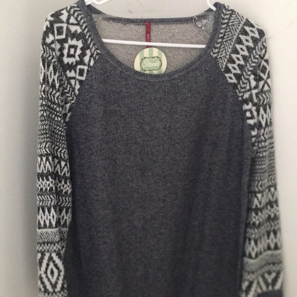 Bellamie size large. NWT. oversized blue/grey tunic with Aztec detail sleeves.