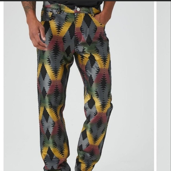 Slim fit men's pants. This Aztec print is perfect for fall.