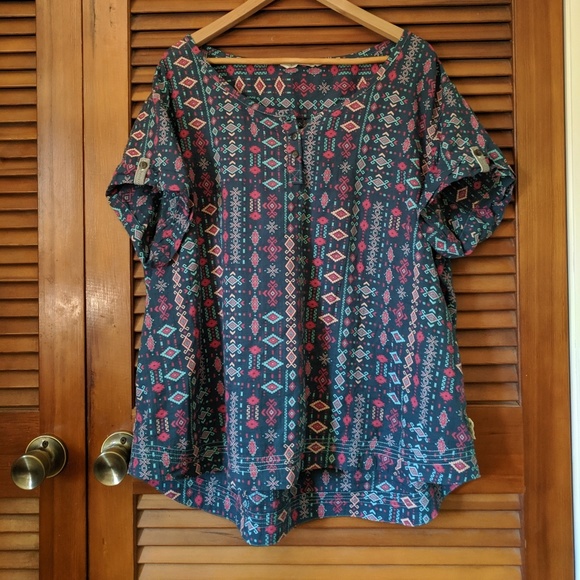 Like new condition, only worn a few times. Lightweight cotton blouse. Lots of cute details, rolled sleeves with button detail, 3 button placket, curved triple stitched high-low hem.