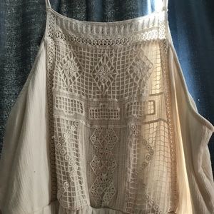 Worn once for graduation. Cream colored. Comes at or right above the knee. It’s way too big on me now. Cute for summer.