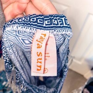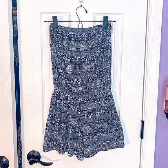 Aztec print, navy blue and white, strapless, very stretchy romper