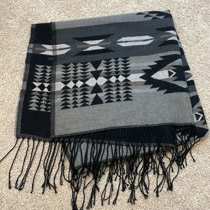Reversible gray/black Aztec pattern scarf. Wide width, fringe detail. Bundle or make an offer!