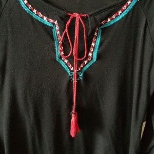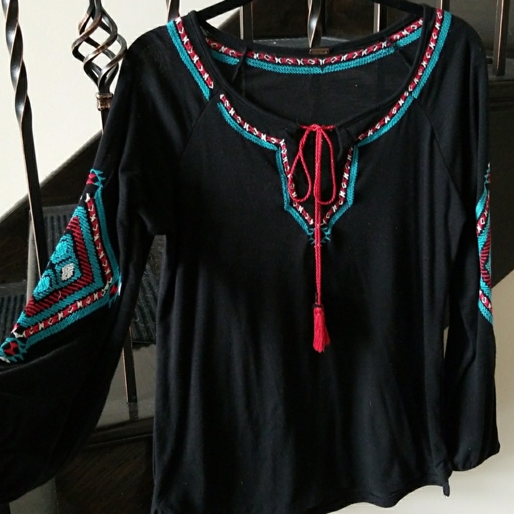 Beautiful colorful but sleek Aztec patterned shirt. Beautiful stitches detail on sleeves and collar.