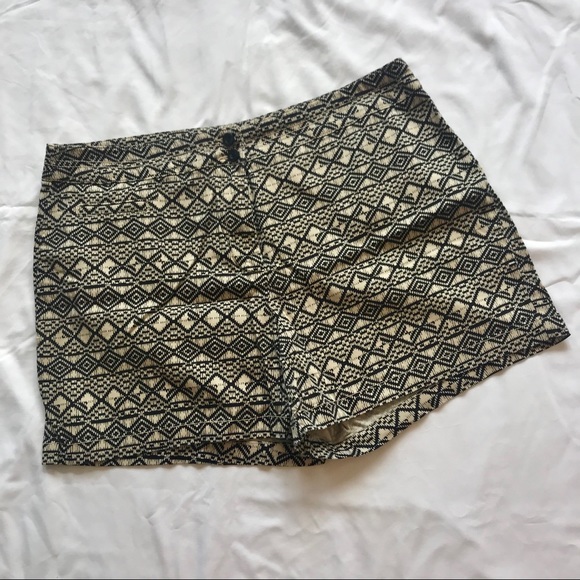 These Aztec pattern shorts in beige and black are in good used condition. Has one small pocket about the size for a lip balm.