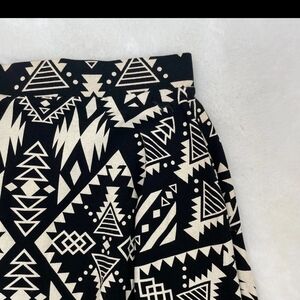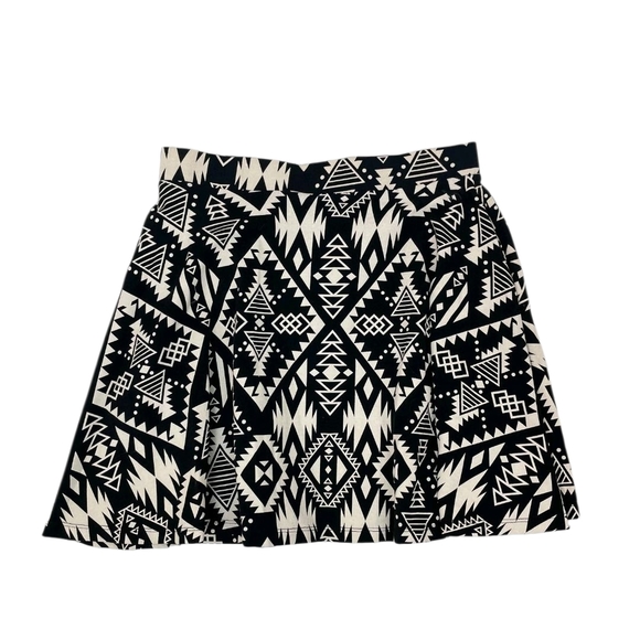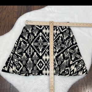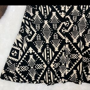 Stylish black and white skirt featuring a bold geometric pattern. Aztec pattern skirt Perfect for adding a chic touch to any outfit.