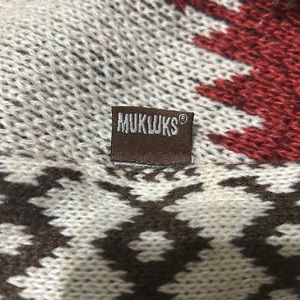 Mukluks poncho, one size fits all, dark blue, brown, cream, and burgundy. Very soft, and like new quality !