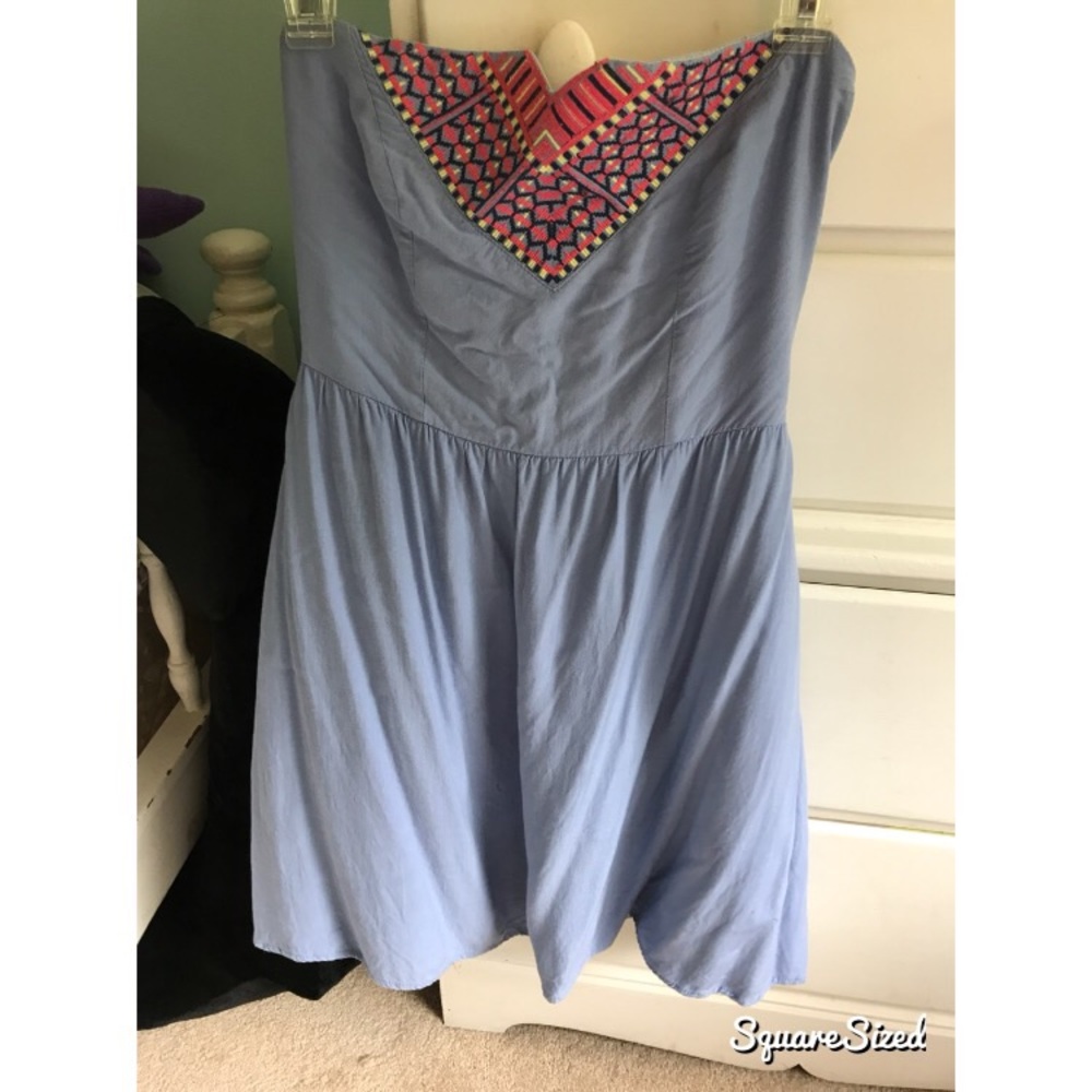 Adorable strapless sundress with stitched pattern at top and sweetheart neck