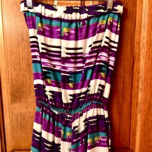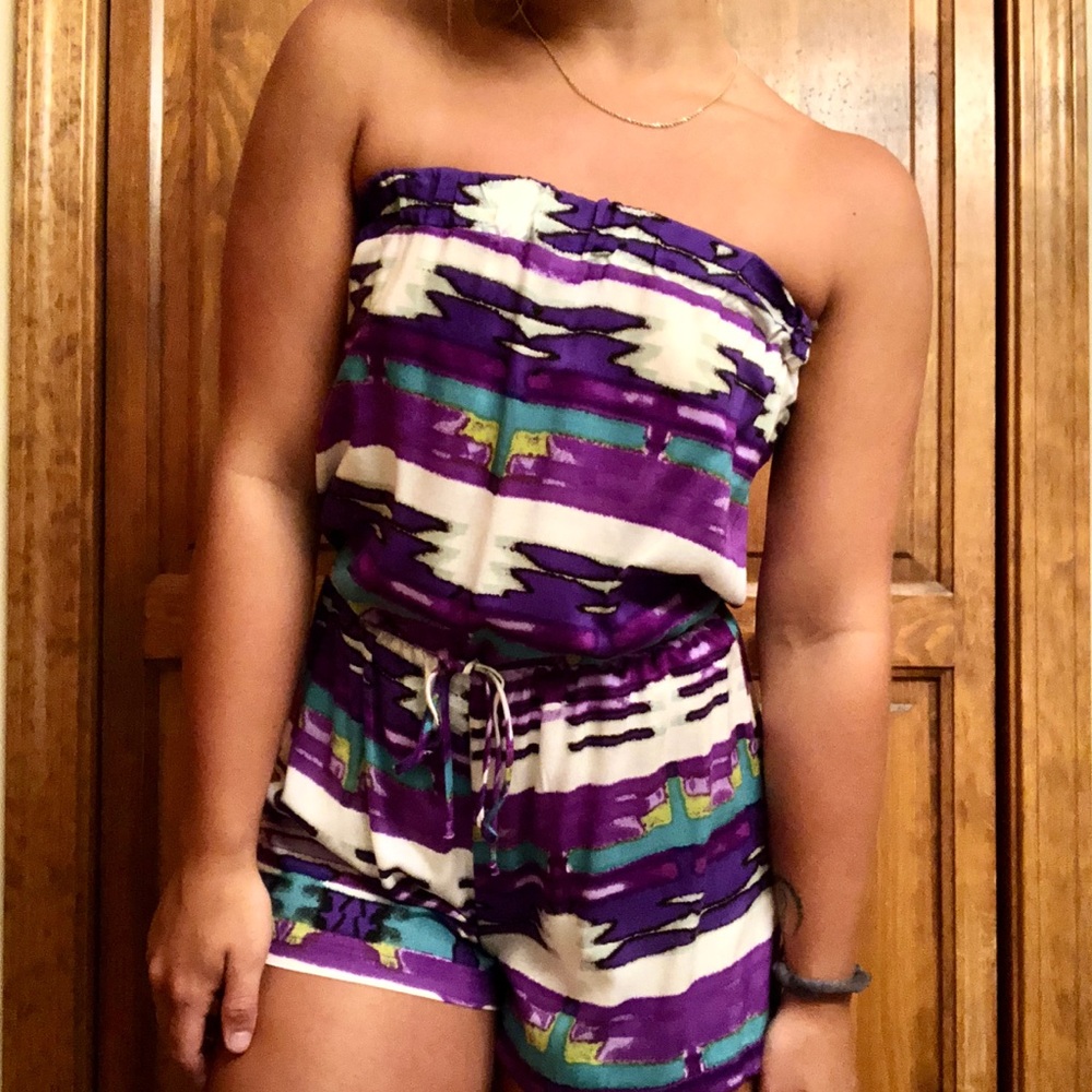 Strapless romper, perfectly paired with tan wedges. ✨💕