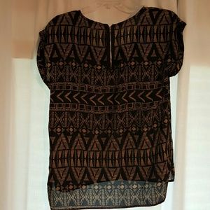 Loose fitting Aztec top. Zipper accent on back of shirt.
