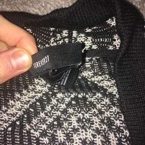 Forever 21 fun Aztec print cardigan. Will keep you warm while adding an edge to any style. Great for the winter season. The only flaw is the detached tag in the collar on one side, but can be easily removed. There are no tears, or stains.