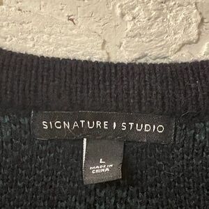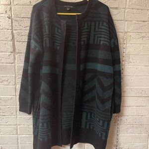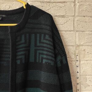 Aztec print Green Black Mid length cardigan sweater w/pockets large