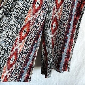 Aztec print buttery soft boho high rise wide leg gaucho pants, size L. Good preowned condition. Cream/black/peach/maroon/blue/orange. You will want to live in these!