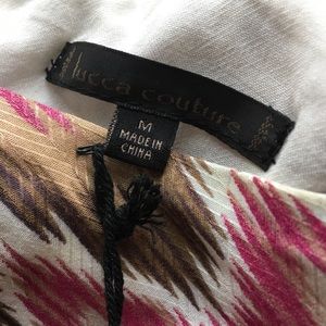 NWT Lucca couture romper, never worn! Different colors than model is wearing! This one is pink/cream/green. So adorable Aztec print, pretty side and back detailing. Size Medium