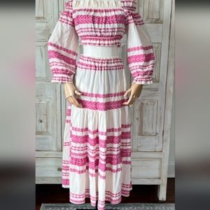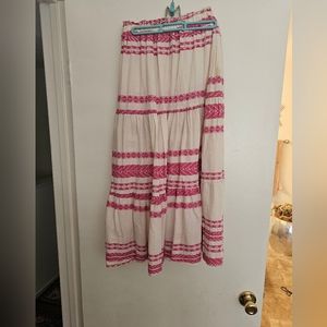 Size Medium top and Size Small maxi skirt . Great for the beach and vacationing. the color is off white and fuchia.