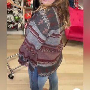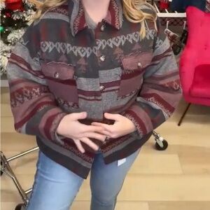 Stay stylish and warm with shacket in shades of grey and pink and red patterned jacket. Perfect for layering, this jacket offers both comfort and fashion.