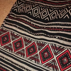 The cutest Aztec black shirts with designs and beading on them. Excellent condition only worn once, no tears, no stains, no fading at all. This probably fits as a Small/medium. It’s actually a size US 6 though. It does run small!! And they are a bit high waisted.