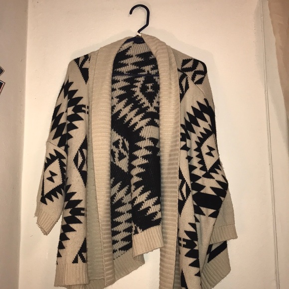 Super comfy Aztec cram and black poncho like sweater or shrug