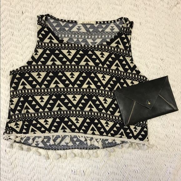 Super cute tank from Francesca's Boutique. Black and cream color Aztec pattern. Tassels on the bottom of the shirt. Only worn once- just didn't fit me. It's basically brand new. Size medium