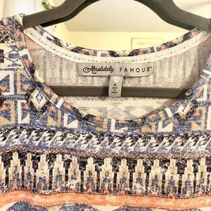 Aztec print quarter sleeve top never worn!! Comes from a smoke-free home!