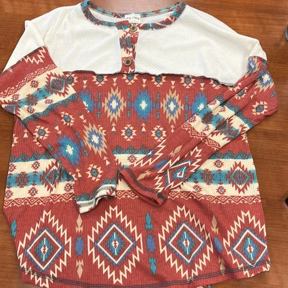 Aztec long sleeved shirt. This has never been worn, was purchased from a boutique and just decided to not keep it. This is lightweight and in perfect condition.