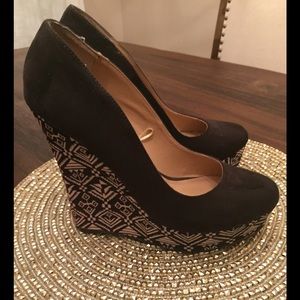 Super cute Aztec black wedges. Only worn a few times, super cute and super fun!