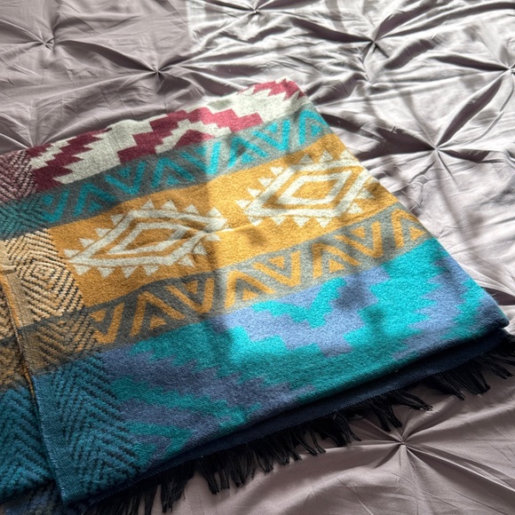 Add a touch of elegance with this Aztec-inspired scarf. Featuring a vibrant mix of teal, gold, and burgundy, it's perfect for any occasion.