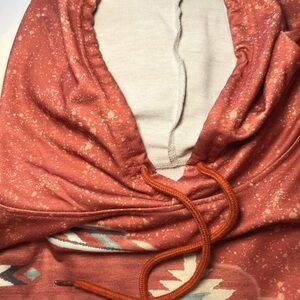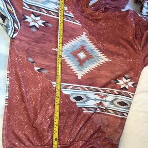 Embrace comfort and style with this rust hoodie featuring an Aztec-inspired design. Perfect for any casual occasion.