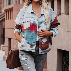 Aztec style patterned jacket. Relax fit, cropped, comfortable, and versatile for every occasion.