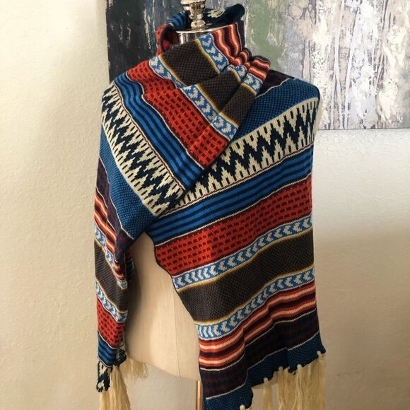Aztec Knit Fringed Scarf
