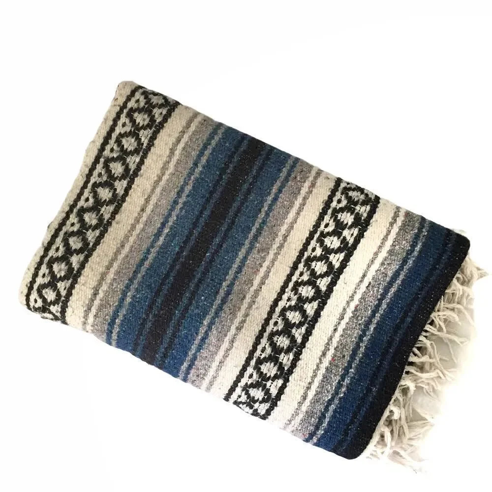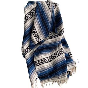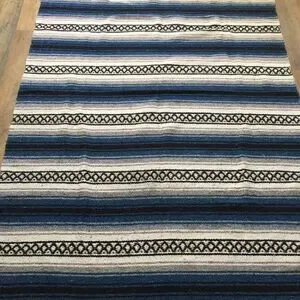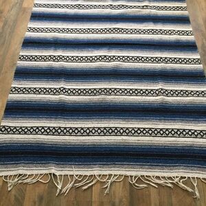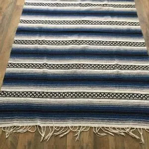 Unmarked Aztec Design Throw Rug Blanket in Blue and White