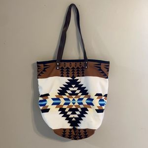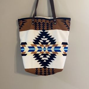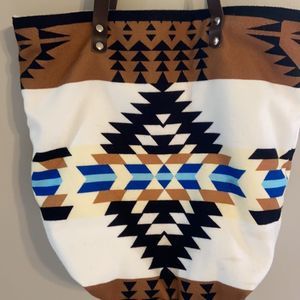 Features: two brown shoulder straps, zip closure, inside pockets, clean insde!, soft almost blanket feel material, purse, work bag