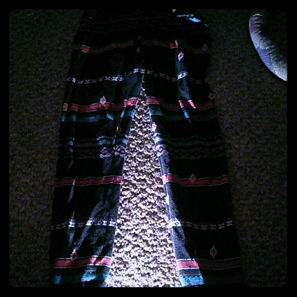 Stripes, triangles, and other designs, no holes, or stains. Worn a couple timea