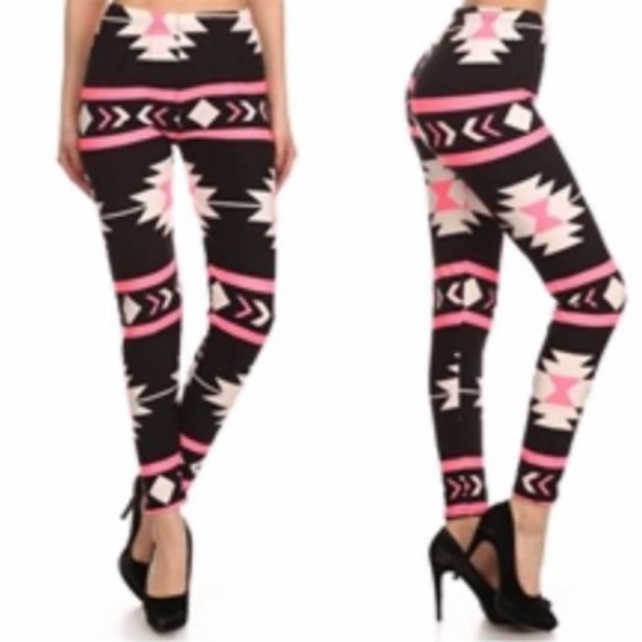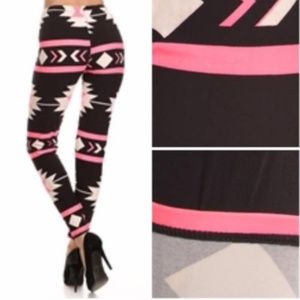 Pink/Black/Ivory tribal print, full length high-waist leggings.