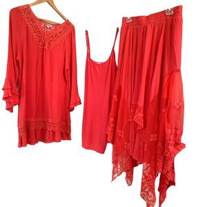Azu' ca 3PC Skirt Tunic Tee Set Boho Spanish Folklorico Flowing Dance XL Vintage