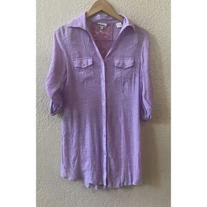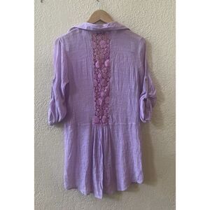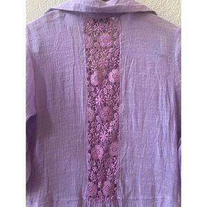 Azucar Button Down Shirt Sz M Lavender Braided Back Gauzy Roll Tab Sleeves