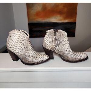 Azulado Python Snakeskin Western Style Ankle Booties Size 9