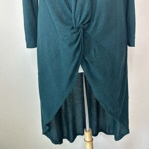 This Azules sweater is a perfect addition to any wardrobe, with a dramatic high-low style and a front knot accent. The tight-knit polyester, spandex, and rayon fabric offers a comfortable and stretchy fit. Perfect for travel, casual, or business occasions, this sweater is a must-have for any fashion-conscious woman. It features long sleeves, a crew neck, and is machine washable for easy care. The dramatic high low hem and front knot will give personality and edge to your look! All measurements are approximate and taken flat.