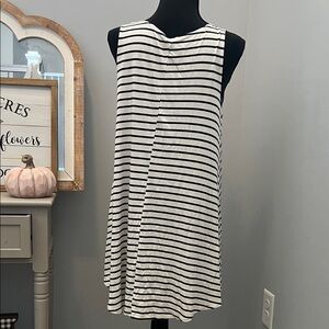 Stylish navy and white striped top. Ideal for everyday wear. Can be a long top or a short dress. Never worn! NWOT