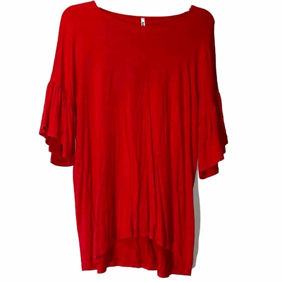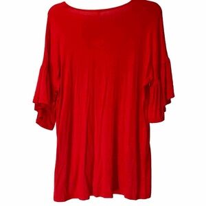 Red top Ruffle hem on the sleeves Flowy fit Gently used with no flaws-see all photos Women’s size small