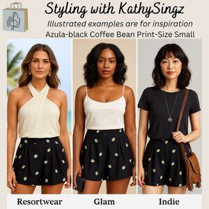 Azulu Brisa Shorts Size Small Black Coffee Bean Print NWT Luxury Resortwear