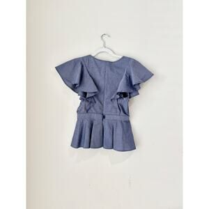 Azulu Chambray Cotton Ruffle Flutter Sleeve Peplum Blouse Blue Women's Size XS