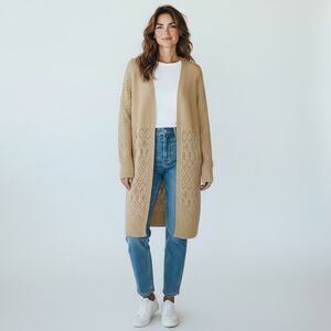 Azur Collection Open Front Pointelle Knit Longline Cardigan Sweater Pale Yellow Size Large
