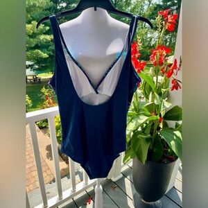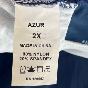 Azur Navy Blue One-Piece Swimsuit Floral Print Size 2X (runs small like XL)