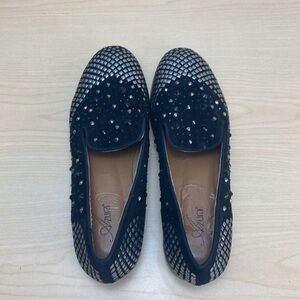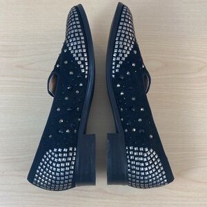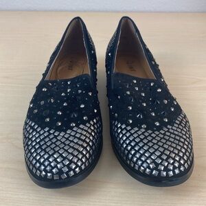 Azura Alisia Black Fabric Silver Studded Loafer Flats Size 37