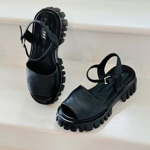 90's inspired, one band premium leather quarter strap sandal featuring heavy lugged unit bottom for all day comfort and modern look.