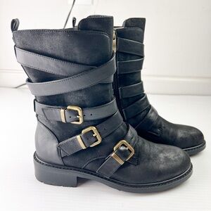Azura Boots womens 6 Black Calmon Engineer Boot Buckles Micro Suede